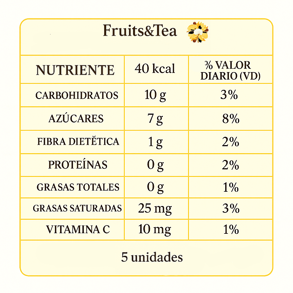 Este té es una opción saludable y versátil, perfecta para quienes buscan hidratarse de manera natural y deliciosa. Gracias a las frutas deshidratadas, conserva el sabor auténtico y los nutrientes esenciales de cada ingrediente. Al infusionarse, libera un color vibrante que refleja su frescura y vitalidad.